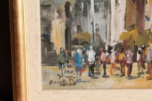 Olaj, karton 23 x 33 cm, jelzés balra lent: Bánfi, hátoldalon: UTCARÉSZLET
