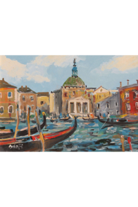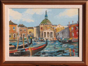 Olaj, karton 23 x 33 cm, jelzés balra lent: Bánfi, hátoldalon: VELENCE
