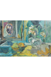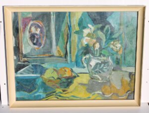 Dallos Lívia: Csendélet ciklámennel és gyümölcsökkel