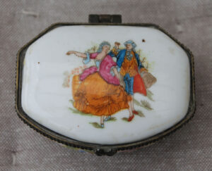 / Festett, XIX. századi porcelán ékszertartó doboz