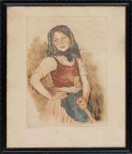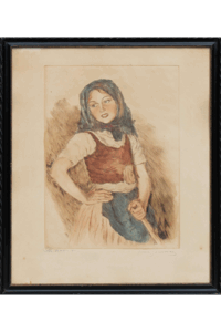 Színezett rézkarc, papír 33,5 x 23,5 cm, jelzés jobbra lent: F…Glatz Oszkár, jelzés balra lent: Prihoda I