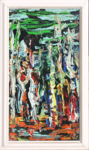 A festmény mérete kerettel 57 x 33 cm. A festő európai iskolás hagyományokra épülő festménye. Ritka darab!
