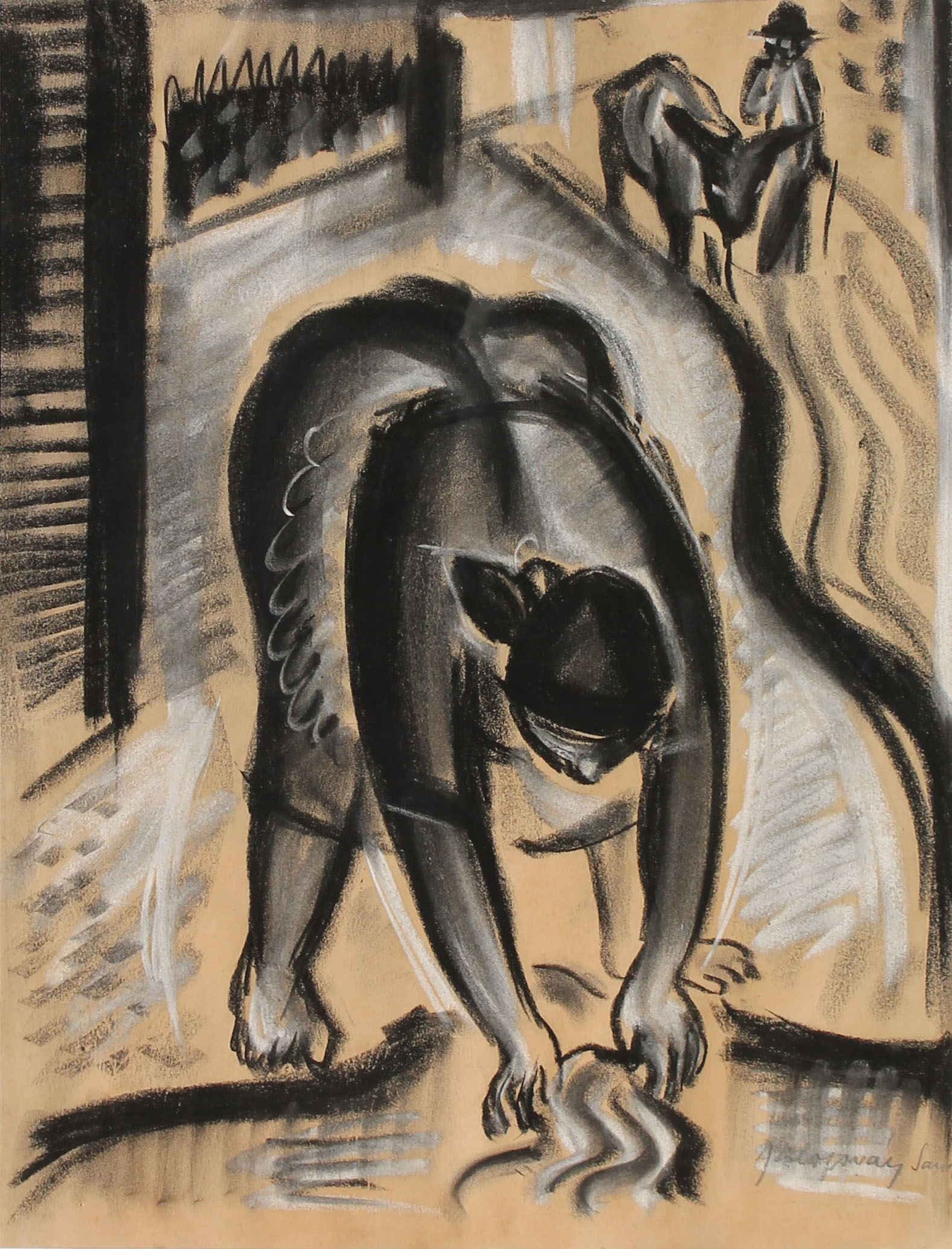 Szén, fedőfehér, papír 48 x 37 cm, jelzés jobbra lent: Kolozsváry Sándor