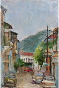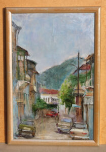 / Kortárs festő: Autók a szűk utcában