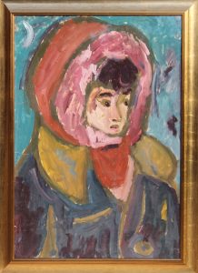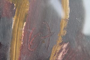 Olaj, papír kartonon 100 x 70 cm, jelzés jobbra lent: 67, hátul PCSVF 67, a karton mérete 100 x 70 cm