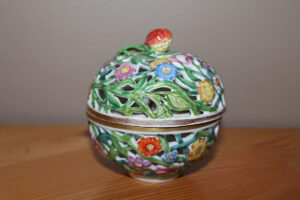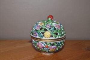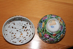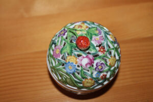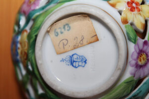 Festett, mázas porcelán, 9 x 9 cm, magyar koronás jelzéssel (alul)