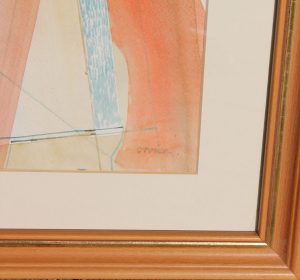 Akvarell, papír 230,5 x 23,5 cm, jelzés jobbra lent: Orojan