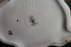 Festett, aranyozott porcelán, 20 x 12 cm, jelezve alul: Wallendorf jelzés